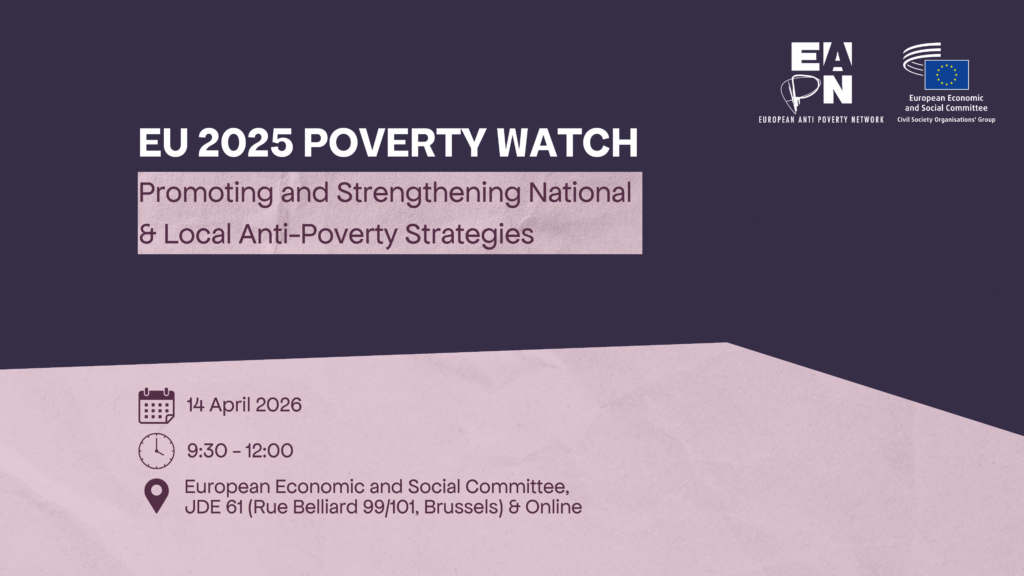 On 14 April, the European Anti-Poverty Network (EAPN) will launch its latest EU Poverty Watch report, “Promoting and Strengthening National and Local Anti-Poverty Strategies” (NAPS & LAPS), at an event co-organised with the European Economic and Social Committee (EESC) Civil Society Organisations’ Group in Brussels.