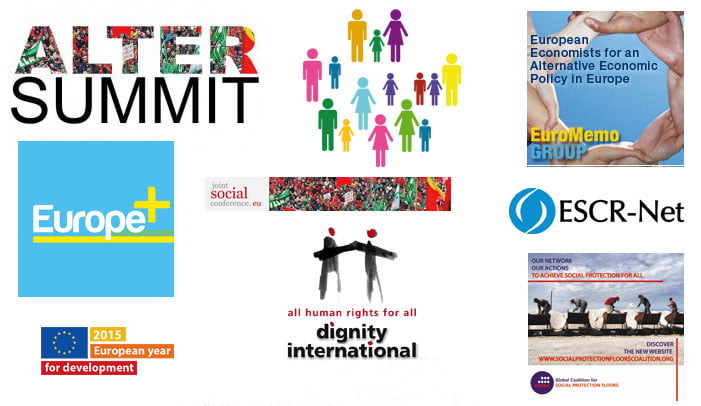 EAPN is part of a pan-European alliance called the Joint Social Conference (JSC), a spin-off of the European Social Forum’s last meeting in Malmö in 2009. It brings together trade unions and social movements /NGOs, such as: trade unions – ETUC, EPSU, CGIL (Italy), FGTB & CNE (Belgium), FSU & CGT (France), CGTP (Portugal), Cartel ALFA (Romania), ver.di (Germany) etc; movements – ATTAC (different countries), Coalition of Resistance (UK), Transform!, the Transnational Institute / Susan George, EuroMarches, Rosa Luxemburg, Tax Justice Network, the Campaign for the Welfare State (Norway) etc.
